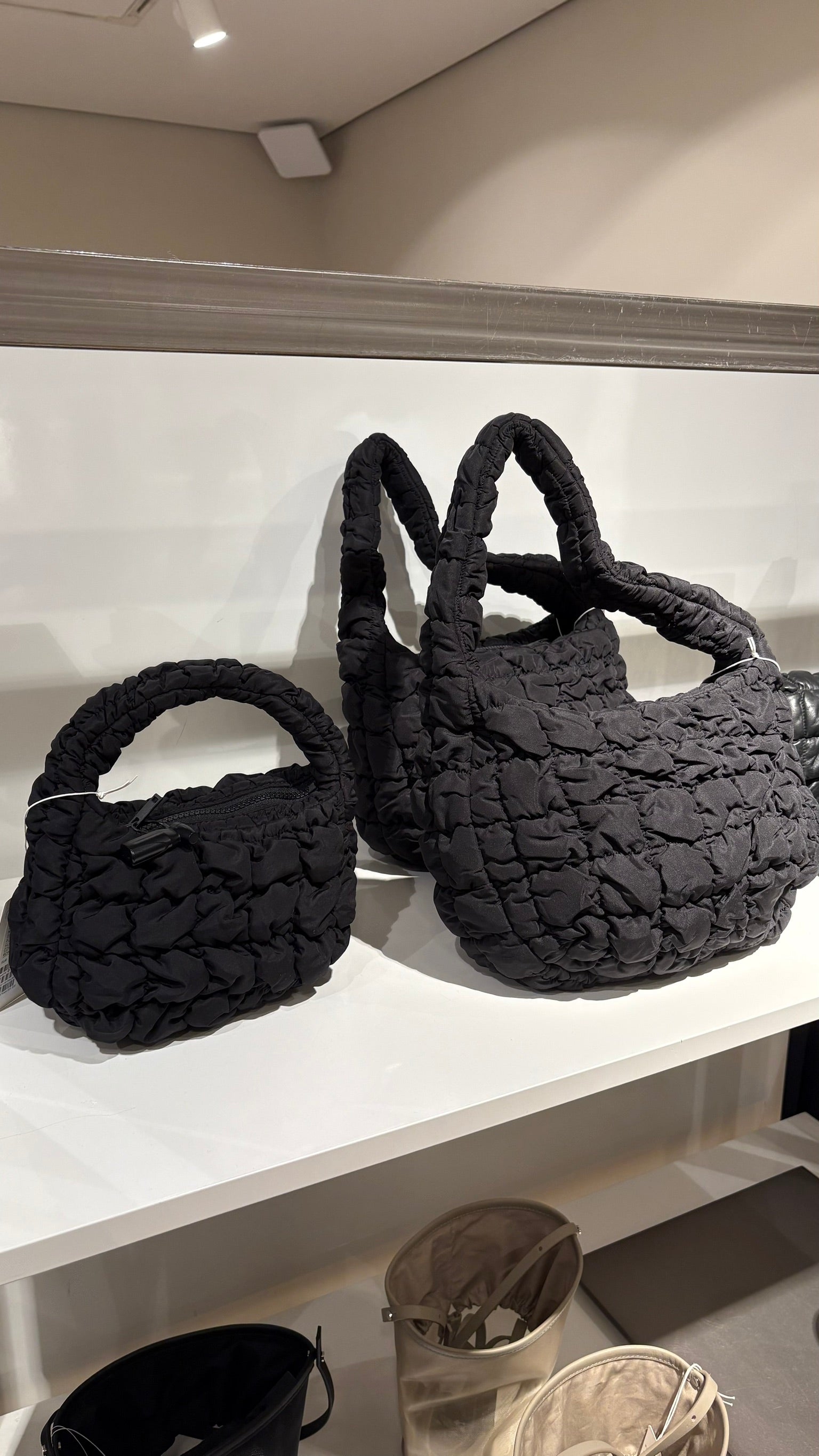 |特色說明|超療癒的「雲朵泡芙」造型,手把採用 scrunchie 鬆緊抓皺設計,手感舒適、造型感滿分。包體輕盈實用,容量也很實用,是近期 COS 人氣熱賣包款之一。